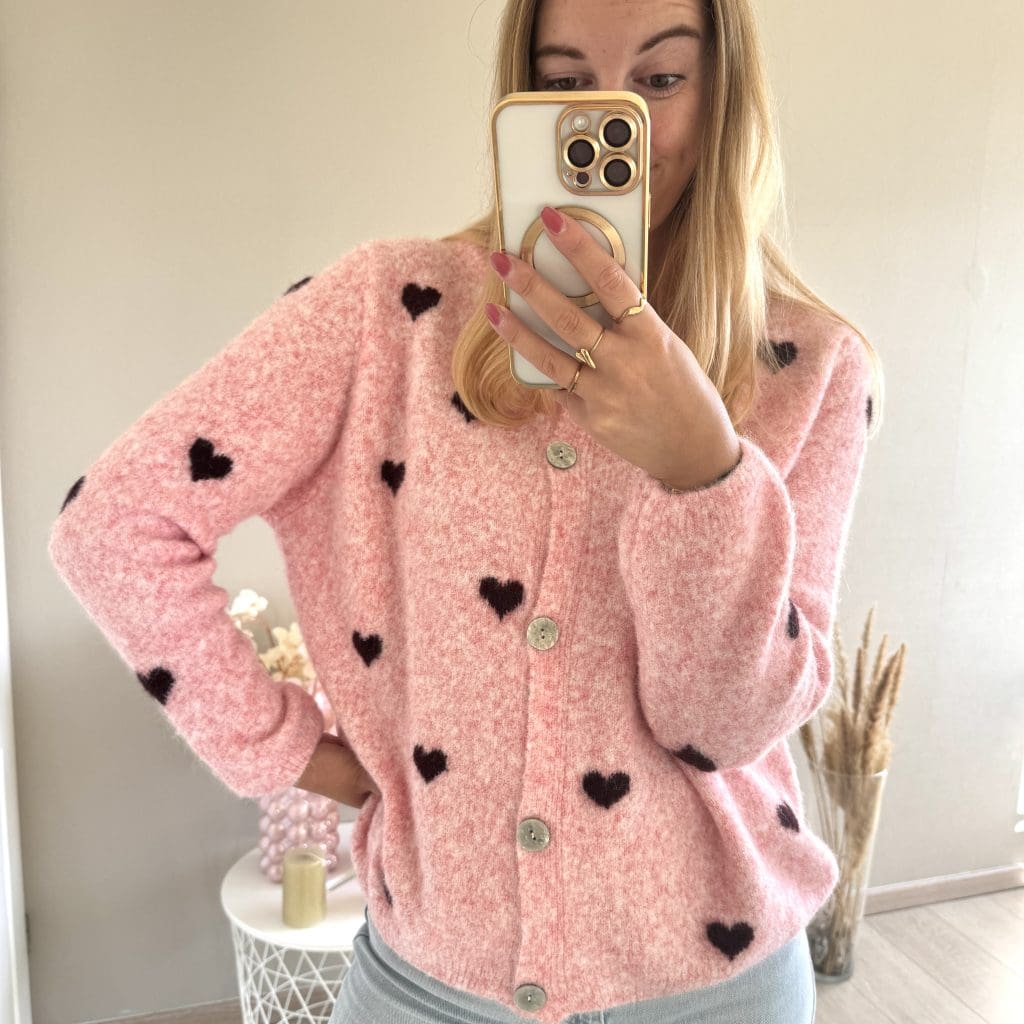 Deze vestjes zijn toch ook tè leuk?! Een vestje met hartjes. Ja, helemaal leuk. Je ziet zo veel hartjes in de winkels hangen. Ik vond deze vestjes helemaal leuk en ze zijn ook echt super lekker zacht. In de vestjes zit elastiek ,want ze rekken best lekker mee. Ik vind ze voor mij helaas te groot. Eerder voor iemand met een M/L. We hebben deze in donker bruin, roze en wit. Bij die laatste twee zijn de hartjes ook nog eens bordeaux rood, dè modekleur van deze winter.