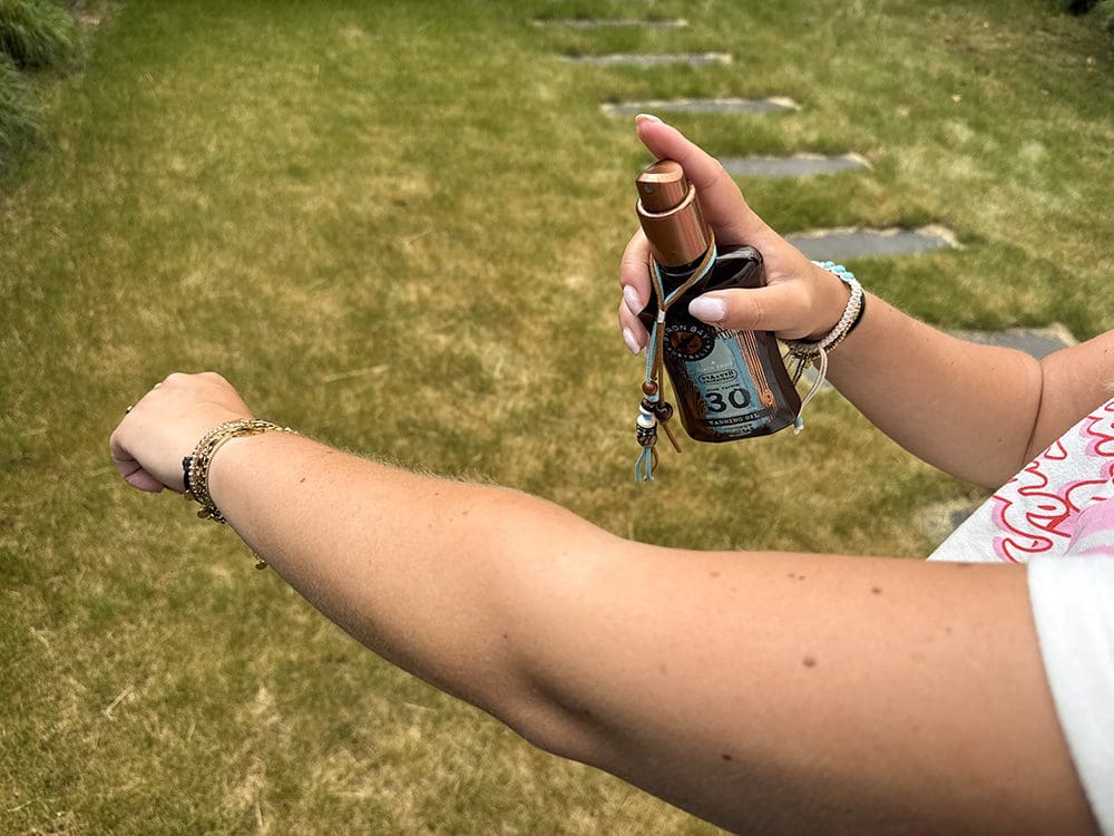 Het beste is om je om de twee uur weer in te smeren. Door zweten, zwemmen en crème gaat de zonnebrand snel van je huid af. Belangrijk om je dus vaak in te smeren. Gebruik voldoende zonnebrand, wees vooral niet zuinig. Ongeveer een hand vol voor je hele lichaam is aan te raden. En vergeet vooral je oren, neus lippen en borsten niet. Deze worden vaak vergeten.