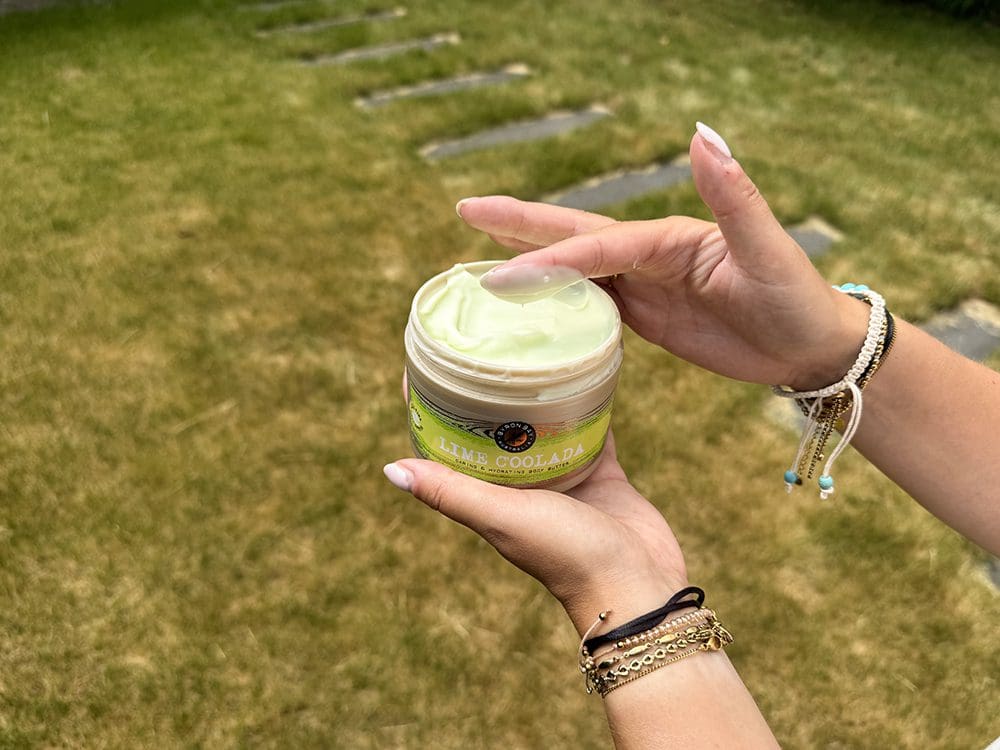 En hoe behoudt je je bruine kleur zo lang mogelijk? Ben je wel iets verband, gebruik dan een aftersun en anders is een voedende bodylotion ook heerlijk. Ik heb de Lime Coolada body butter van Byron Bay. Deze body butter is verzorgend en voedend en helpt hierbij mijn bruine kleur langer te behouden.