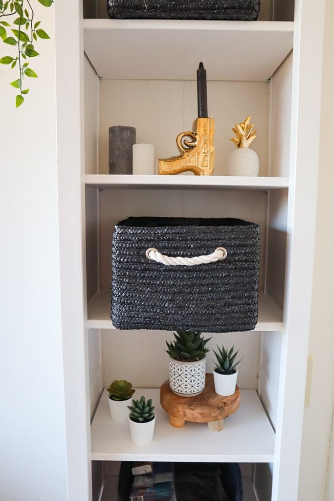 En dan is mijn trots toch stiekem wel onze kast in de woonkamer. Hierin staan mandjes waar we rommeltjes en dingen in bewaren. En tussendoor ben ik met mijn ‘ deco kunsten’ aan de slag geweest.