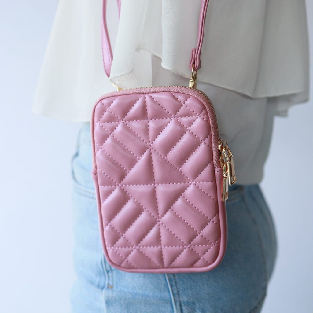 Een van mijn favorieten tasjes: de telefoontasjes. In deze kleine tasjes past precies je telefoon en eventueel wat pasjes. Echt ideaal om te gebruiken tijds een avondje uit of een festival. Deze telefoontasjes hebben we in drie verschillende kleuren. Het zal je niet verbazen dat roze mijn favoriete kleur is. Het fijne is ook dat deze tasje niet zo bol zijn. Ze blijven mooi plat.