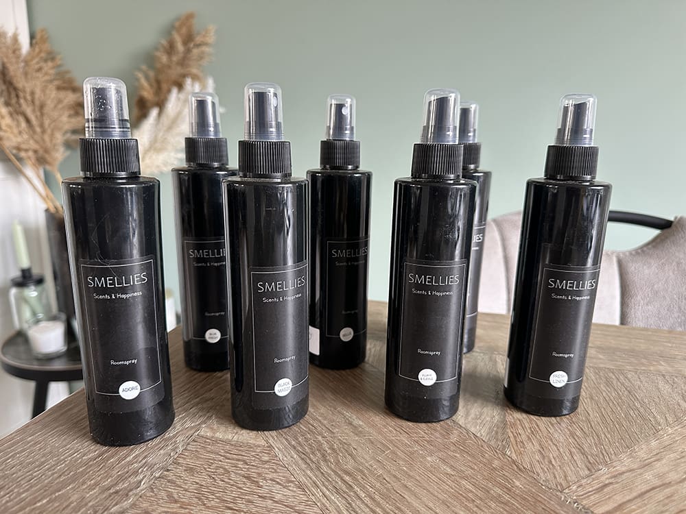Dan als laatste nog onze roomsprays. Dit zijn dezelfde geuren als bij de geurolies. Van lekker zoet tot wat frisser. Misschien vind je juist een roomspray fijner om in huis te hebben. Lekker sprayen en je huis ruikt heerlijk. Ik spray zelf momenteel ook met ‘ Black Magic’ om in de sfeer van mijn geurolie te blijven, haha.