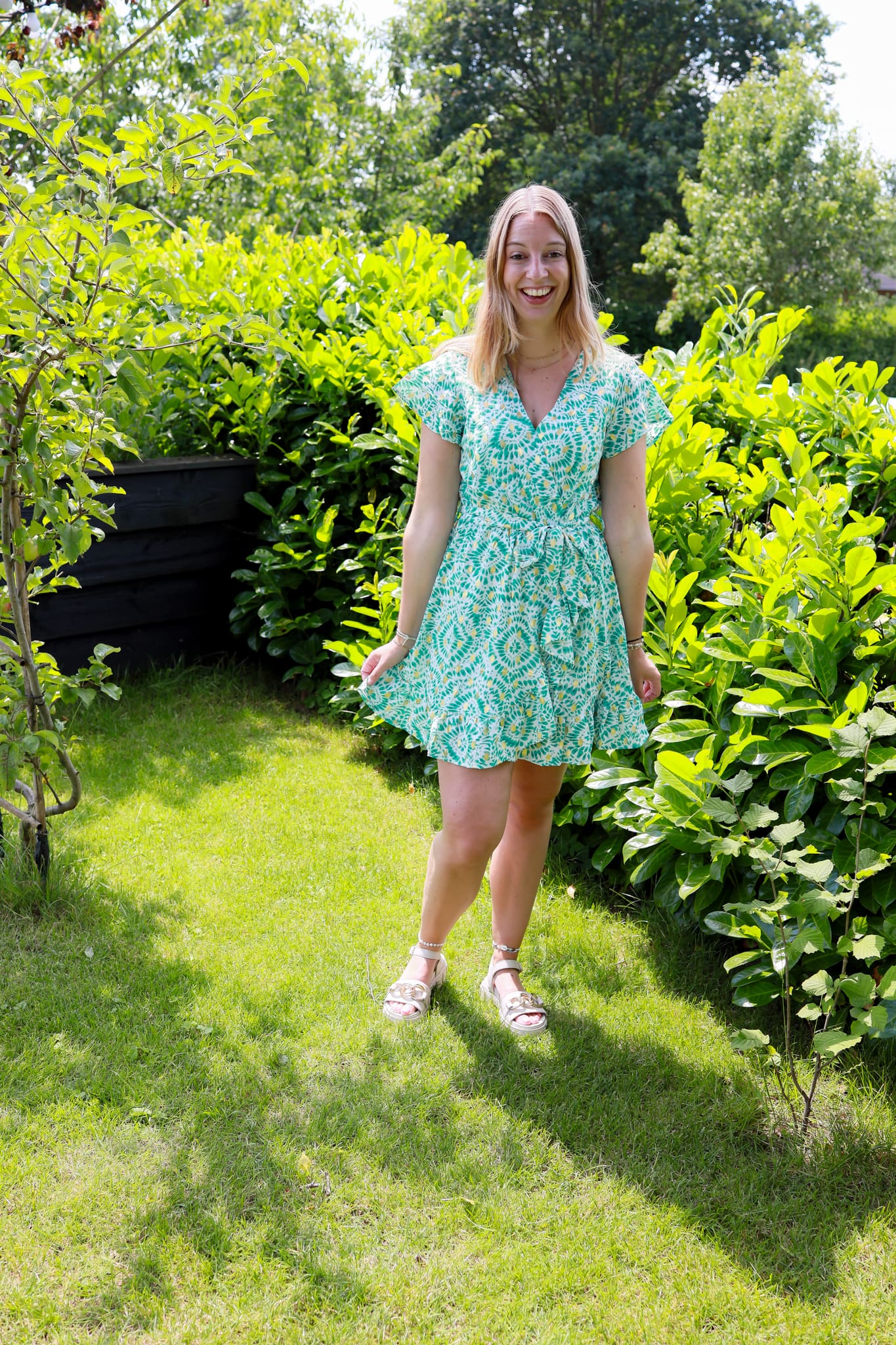 Beide zijn echt super vrolijk! Lekker zwierig en luchtig. Een ideaal zomerjurkje dus. De jurk komt in twee verschillende maten: S/M en M/L. Ik draag zelf de eerste maat en is ruim zat. Om je middel zit een centrum die je leuk kan strikken. Stijl het jurkje leuk met een slippertje of een sandaaltje en you are ready to go.