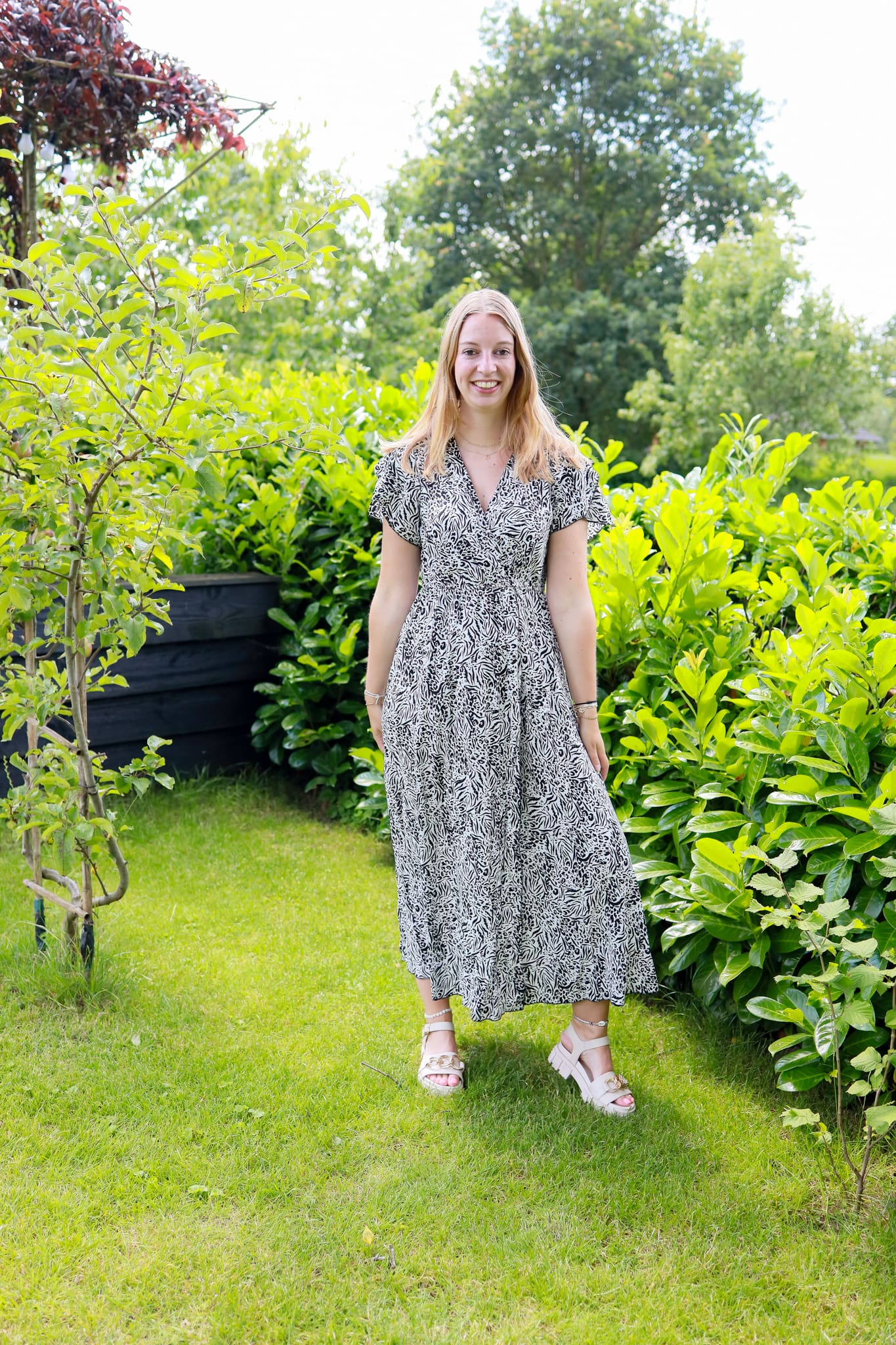 Liever een iets langere jurk? Die hebben wij nu ook! Deze overslag jurk is lekker lang. Maar wel heerlijk luchtig. Hij zwiert gewoon om je heen, haha. Om je middel zit elastiek en zo past deze jurk bijna iedereen.