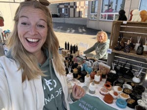 We zijn geen echte marktkoopmannen/vrouwen hoor, haha. Maar door de tijd heen hebben we het één en ander geleerd hoe je een marktkraam aankleed. Wat werkt wel en wat werkt niet. En hierin leren we nog steeds bij. Dat maakt het super leuk om op de markt te staan.