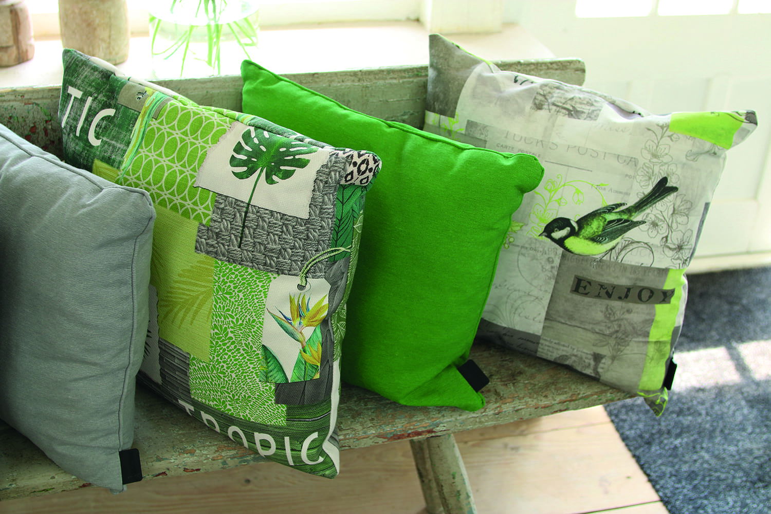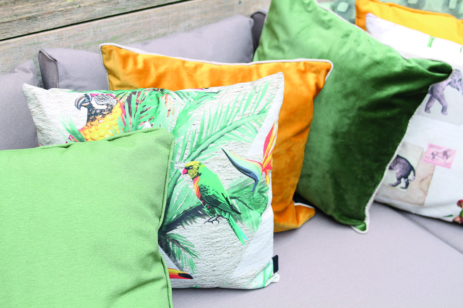 Ik vind dit soort groenige kussens namelijk heel erg tof voor buiten. We hebben een tijdje een schommelbank gehad en daar lagen ook groene kussens op. Ik vind het een heerlijk frisse kleur en leuk voor buiten. Gaaf op een zwarte of grijze loungebank.