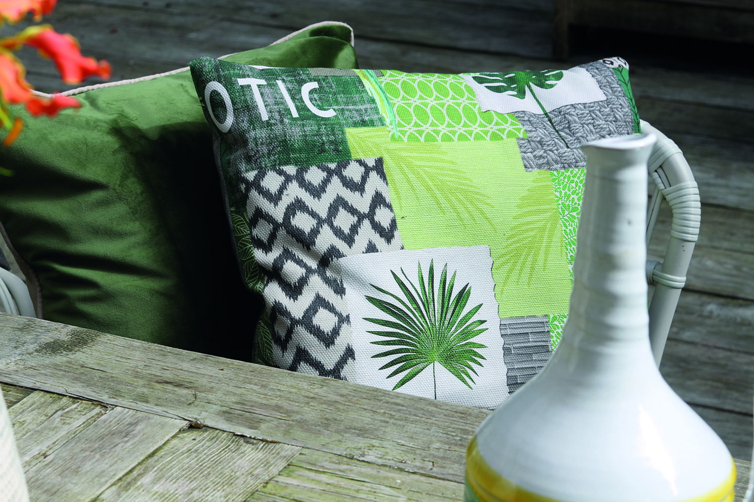 En plantjes op een kussen matchen buiten ook altijd wel.