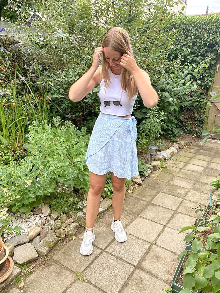 De eerste van de sneaker looks is een look van kort geleden. In deze outfit kun je mij uittekenen. De items komen van NA-KD en de sneakers heb ik online besteld. De witte/beige sneakers passen helemaal bij het lichte rokje en witte topje. Een lief en luchtig lookje. Door de sneakers een stoere touch. Van deze lichte sneakers kunnen onder veel outfits. Net als de Saucony sneakers dames.
