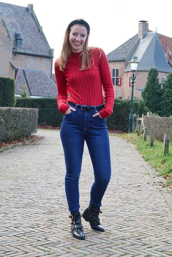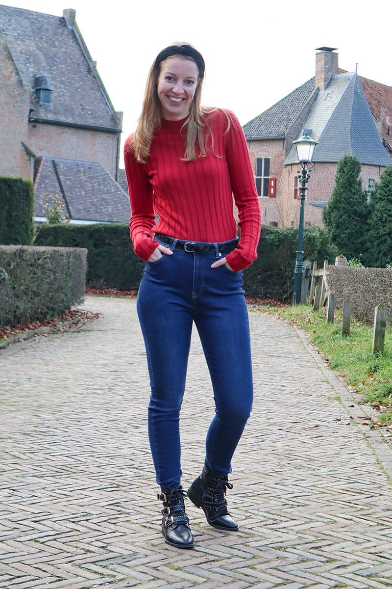 Hoi! Vandaag even een heerlijke casual look. Ik heb namelijk een fijne back to work outfit na de feestdagen. Je hebt dagenlang in een jurkje en op hakken rondgelopen en nu… Even gewoon een fijne jeans en mooie top. Maar we blijven wel een beetje in stijl met een rode kleur en leuk riempje! Bekijk de foto’s van mijn casual look.