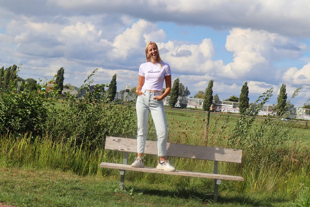 Het laatste shirtje is een cropped top. Een witte cropped top (£6,99) met ‘ basis’ erop. Mmmh een cropped top, die kan ik beter een maatje groter doen. Ik koos voor een M/L. Goed gegokt: deze zit top! Alleen het shirtje schijnt gigantisch door…. Even rekening mee houden qua bh. Maar dan is ie erg leuk. Een mooi cropped shirtje die goed op high waisted broeken te combineren is. Wel voor de zomerse maanden natuurlijk. Anders is het shirtje echt te koud.