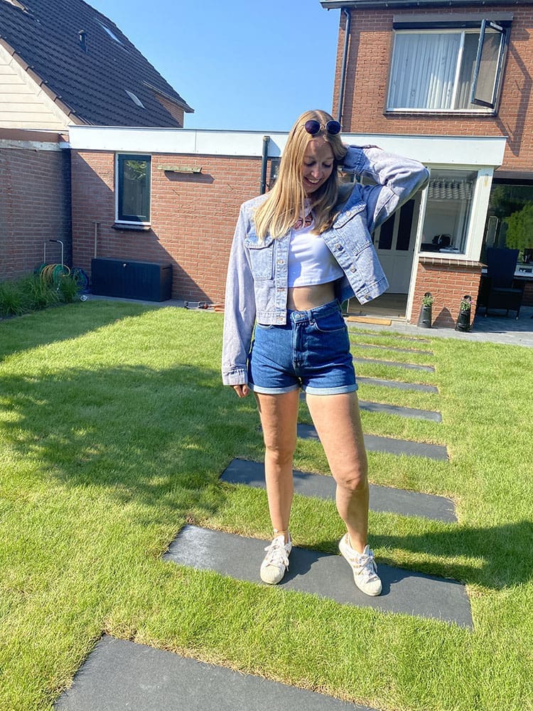 Mocht het in de zomeravonden nou wat kouder worden, heb ik een super leuk denim jack om eroverheen te dragen. Helemaal verliefd op dit oversized jasje. Hij zit echt zo fijn, lekker soepel. Ook deze heb ik in een maat S en valt prima. De mouwen zijn zelfs wat aan de lange kant. Lekker oversized dus.
