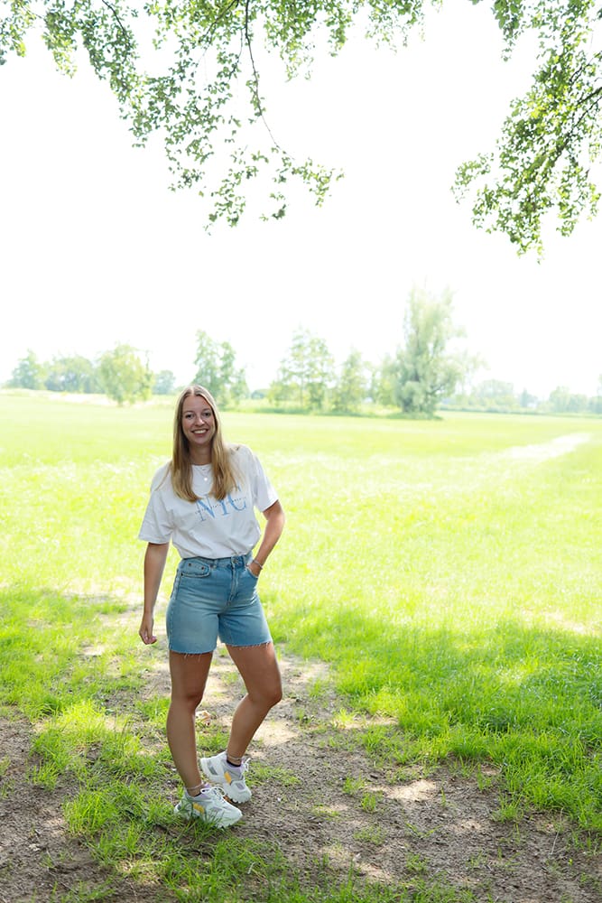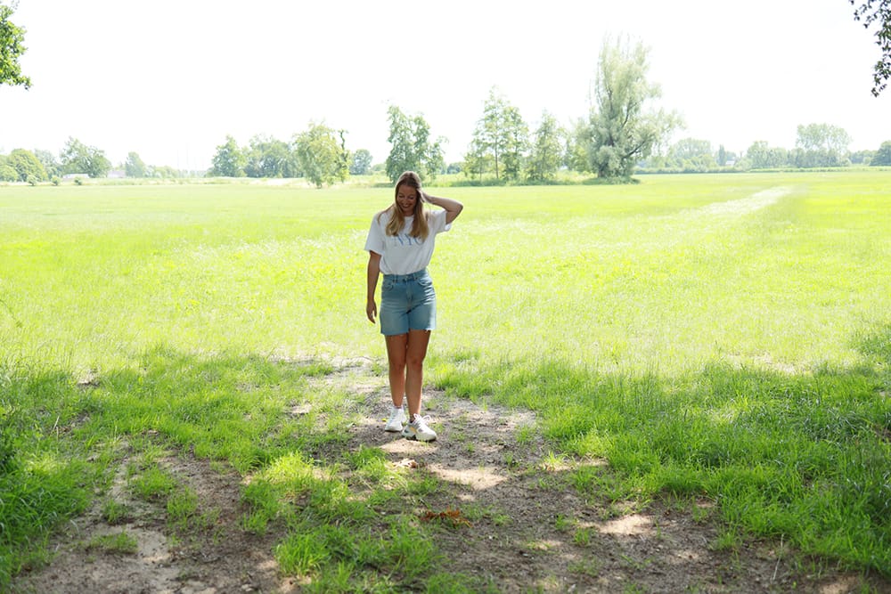 Het leven is zo veel makkelijker met een korte broek, haha. Ik heb aardig wat shorts in mijn kast. Maar dan echt van die korte broekjes. Deze broek van NA-KD is net even iets langer. Ik vind het een hele fijne lengte. Deze broek kan ik ook mooi naar mijn werk op school aan. De lengte is net wat netter dan die hele korte shorts. De broek heb ik in maat 36 en zit net goed. Hij mag nog wat uitlopen. Ik zag dit model jeans nog in meerdere kleuren op de site staan, super leuk. Ik vind het zelf leuk om een oversized shirt op de jeans te dragen maar een korte top kan ook.