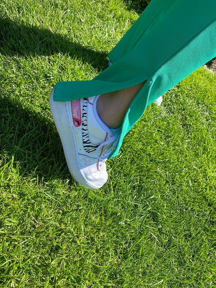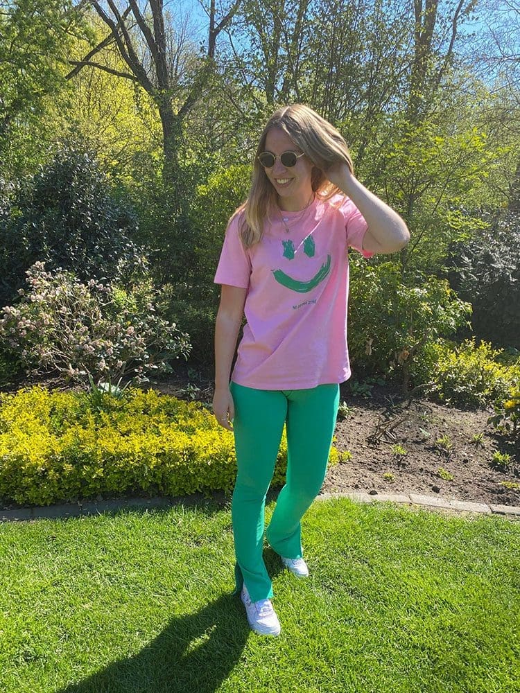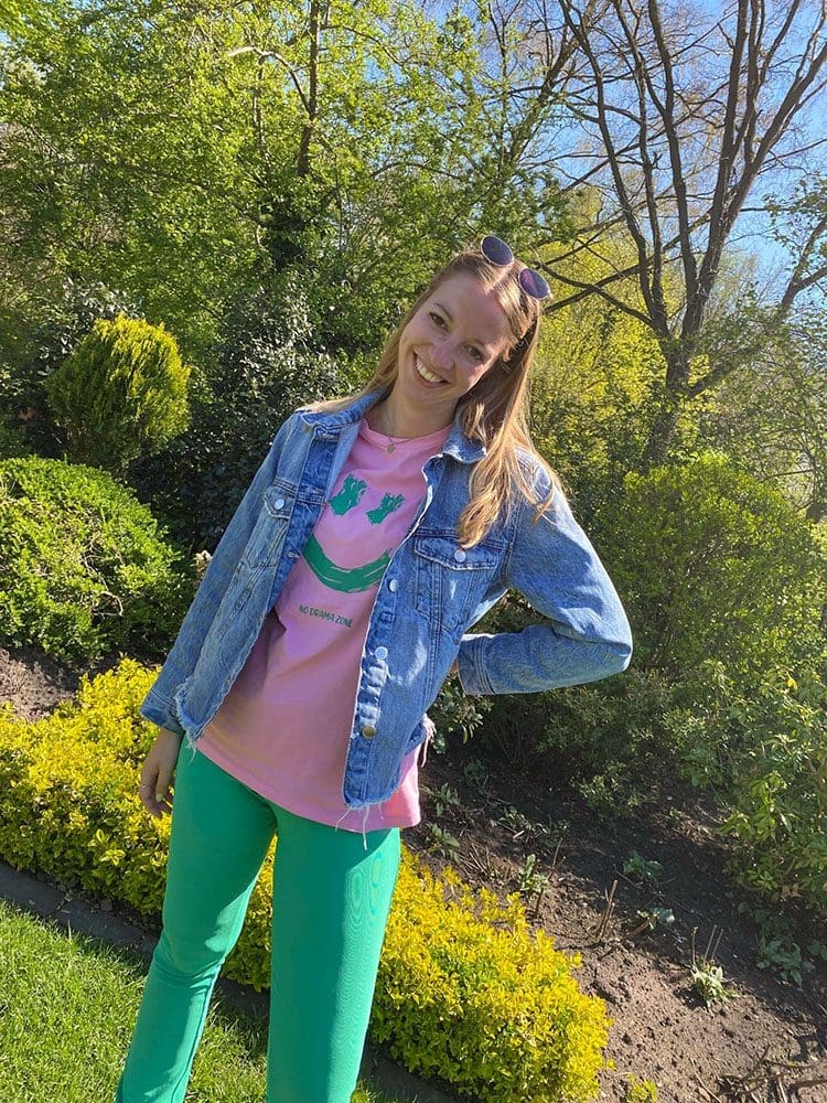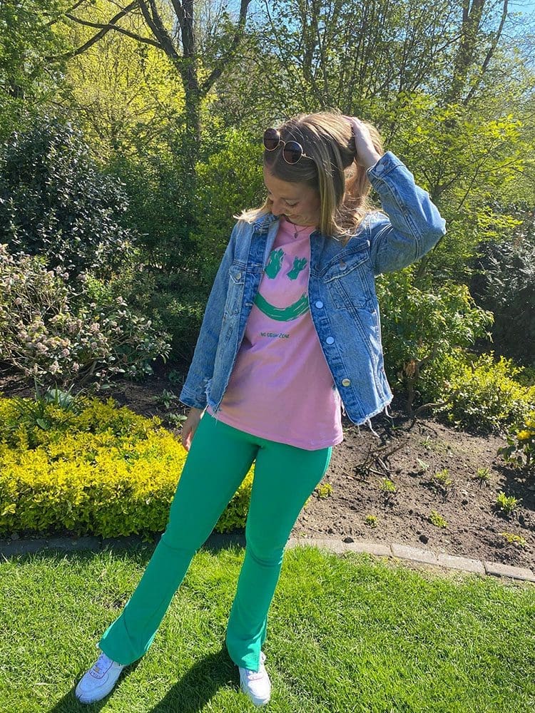 De outfit No Drama Zone schreeuwt kleur. Ik vond het eerst wel heftig om twee totaal verschillende kleuren te combineren. Roze met groen. Maar tegenwoordig kan alles he. Blauw met oranje en rood met roze. Dan kan roze met groen ook, haha.