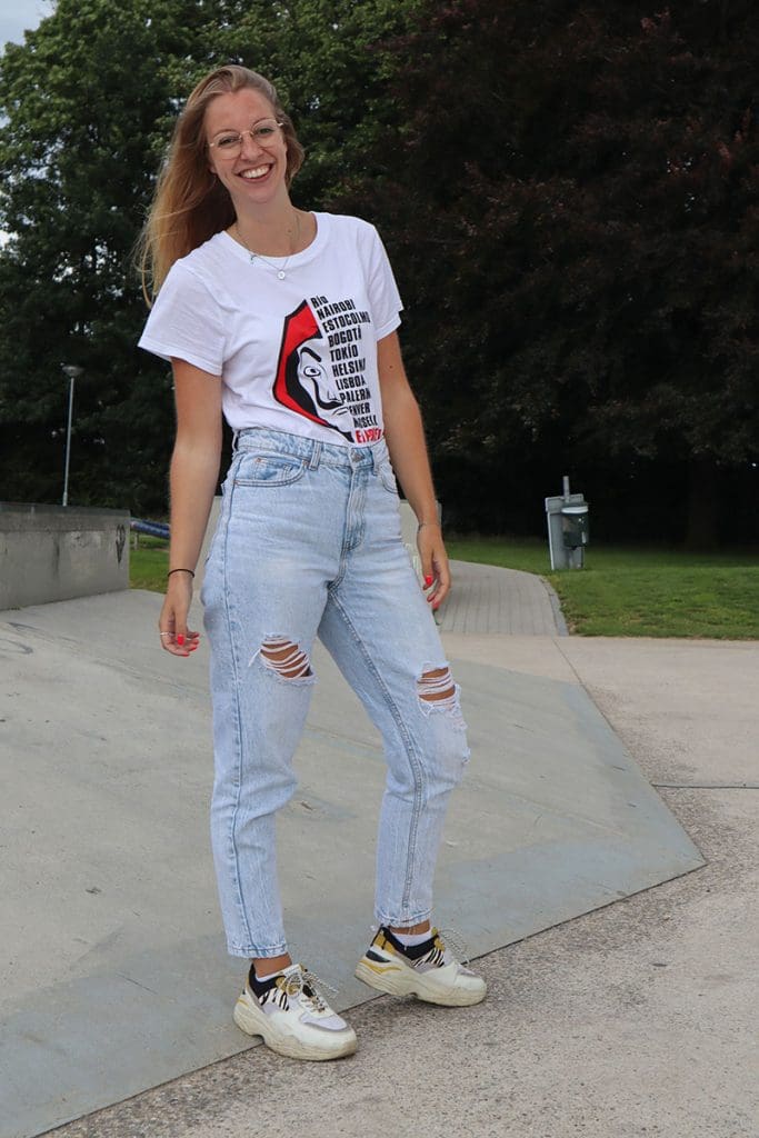 Zo draag ik in deze Primark outfit mijn oversized La Casa De Papel shirt erop. Yes, deze komt ook van de Primark. Deze scoorde ik een paar maanden geleden al daar. Speciaal voor de La Casa De Papel collectie ging ik toen kijken. Ik heb er ook een trui van. Of ik soms fan ben van de serie? Hoe kom je erbij….