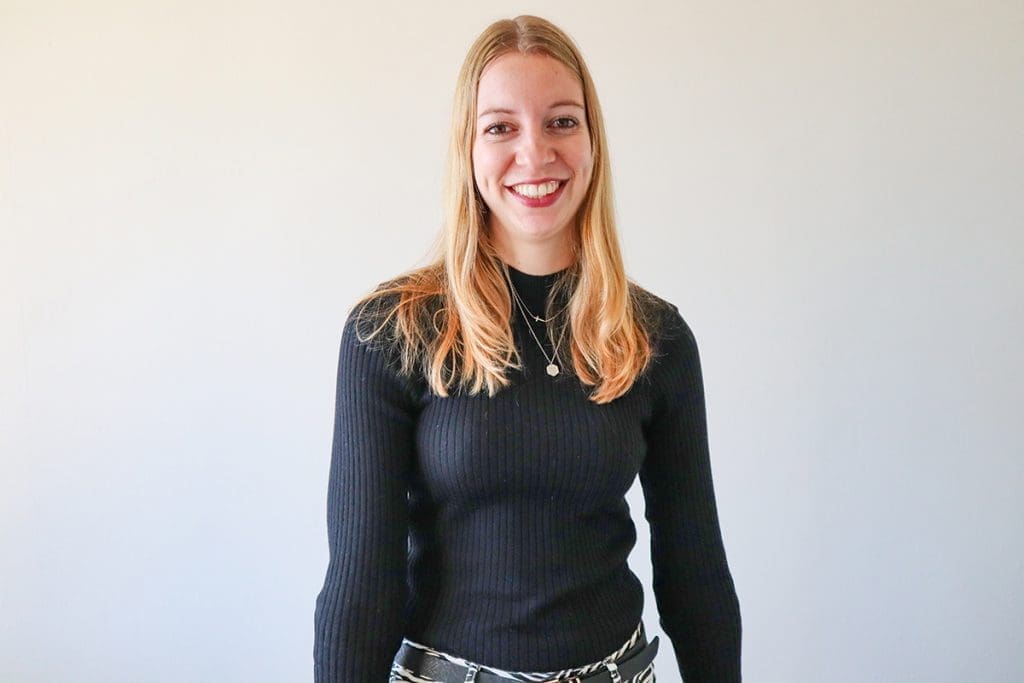 Het is een high waisted model. Dat vind ik altijd fijn dragen. De broek is het mooist te combineren met een effen top. Ik draag hier een zwart aangesloten truitje. Deze kan ik mooi in de broek doen. Een riem erbij en wat kettingen om de outfit af te maken.