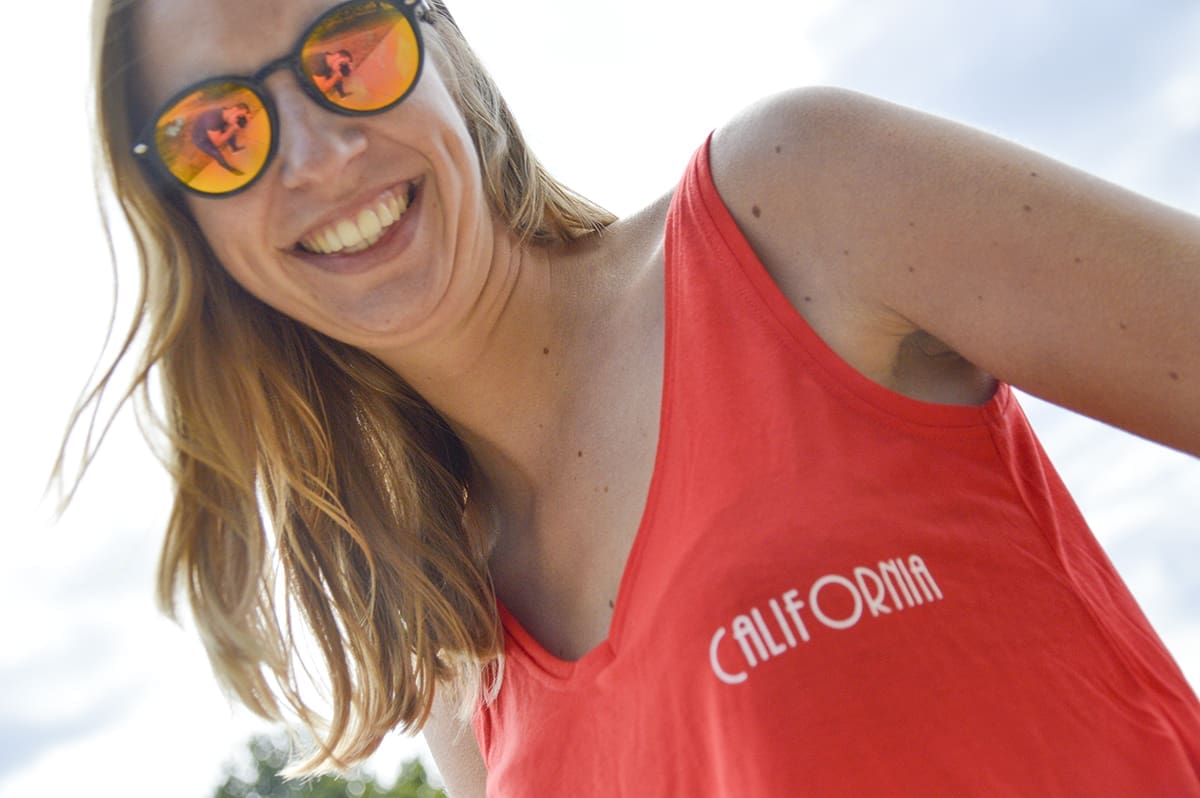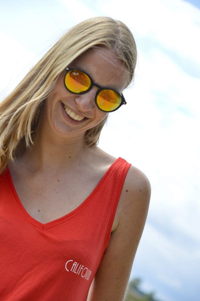 Ik heb namelijk gekozen voor een knalrood hemdje. Ik word van deze kleur zo vrolijk hè?! Dit is toch een geweldig zomers kleurtje! Het is een katoenen hemdje en dat is heerlijk luchtig. Op het hemdje staat in het klein: California! Jep, Ik ben daar al twee keer op vakantie geweest, dus deze tekst is gewoon helemaal passend.