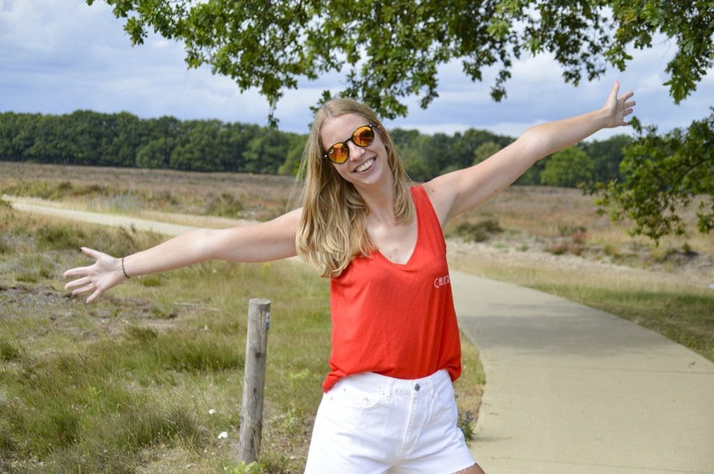 De hals van het hemdje vind ik ook erg gaaf, kun je daar nog een beetje bruin worden. En de achterkant is precies zo laag uitgesneden. Een leuk detail! Het is een fijn ‘simpel’ hemdje om makkelijk te combineren in de zomer.