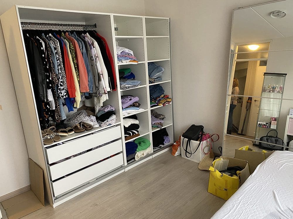 Wanneer alles droog is, kunnen de spullen weer terug in de kamer. Mijn grote kledingkast is natuurlijk wel een eye-catcher. Je hebt tegenwoordig zoveel mooie kledingkasten. Zo zag ik laatst bij OTTO dat ze tegenwoordig zoveel mooie kledingkasten hebben. Hier kan ik veel in kwijt en het staat mooi in de ruimte. De deuren zaten er lange tijd ook niet in. Die zijn zo zwaar en tijdens het klussen is mijn kledingkast blijven staan.