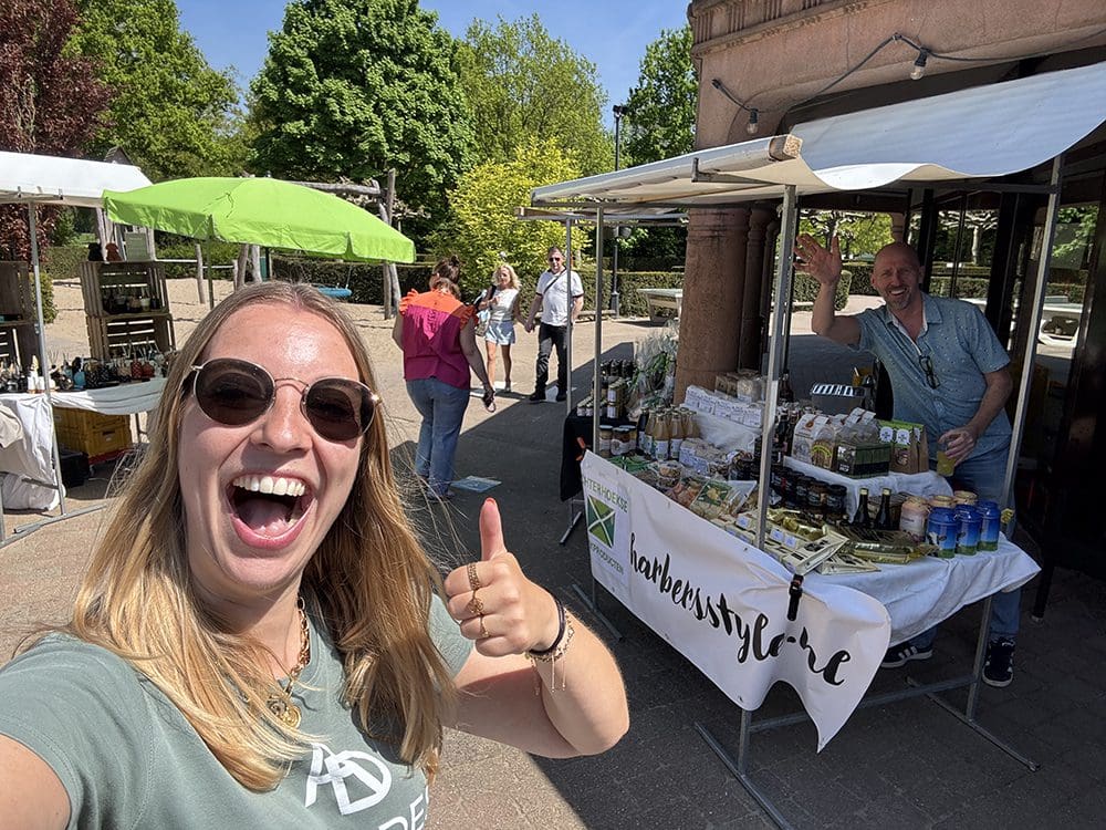 Lekker in het zonnetje. Lelystad heeft ons verrast. De omzet was redelijk goed en we hebben veel gezellige mensen gesproken.
