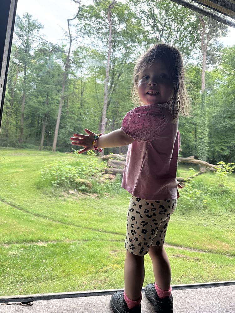 Eerst nemen we een kijkje bij de safari. Het panterprint broekje van Sylvie matcht er helemaal bij.
