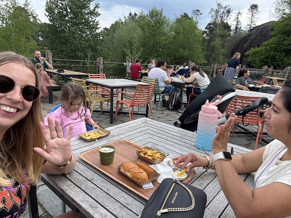 Vrijdag (2 mei). Ik ging gezellig met Sylvie en Velca me naar de dierentuin. Op naar Burgers Zoo. En Sylvie vroeg of ik naast haar kwam zitten, haha. Schattig.