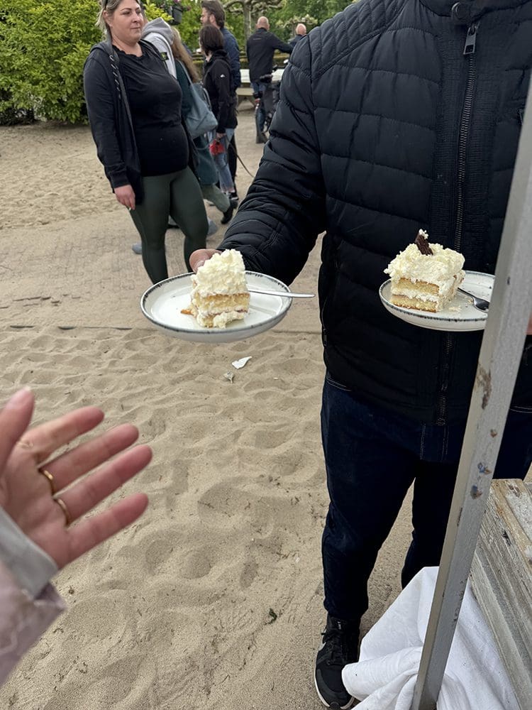Terug naar de kraam, klanten! Thijs kwam mij daarna de taart brengen. Het was bij mij eind van de middag nog best druk.