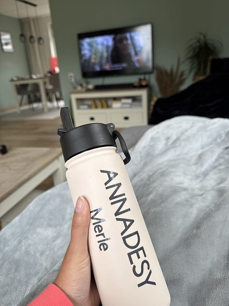 Daarna heeft moeders met haar Circut stickers gemaakt en deze hebben we op onze flessen gemaakt. Kijk hoe gaaf!