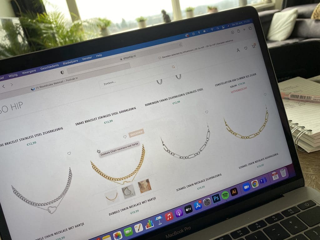 Donderdag (25 maart). Ik zat wat buiten en binnen zat ik even achter de laptop. Mocht wat toffe sieraden uitzoeken.