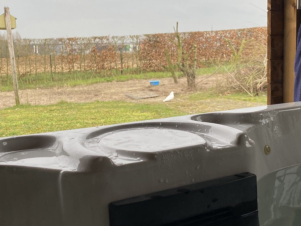 Bij mijn ouders ben ik eind van de middag even in het bubbelbad geweest. Lekker relaxen. Pa heeft het kippenhok (inclusief de kippen) weggedaan. Het enige beestje dat er nog is: ‘de huisduif’. Hij vliegt en zit rondom het huis en komt eten.