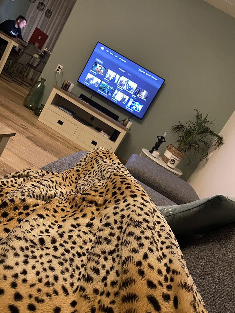 Van Rianne hadden we haar oude tv overgekocht. Deze hebben we nu met een beugel in onze slaapkamer bevestigd. Super gaaf en we keken gelijk een aflevering van een serie in bed.