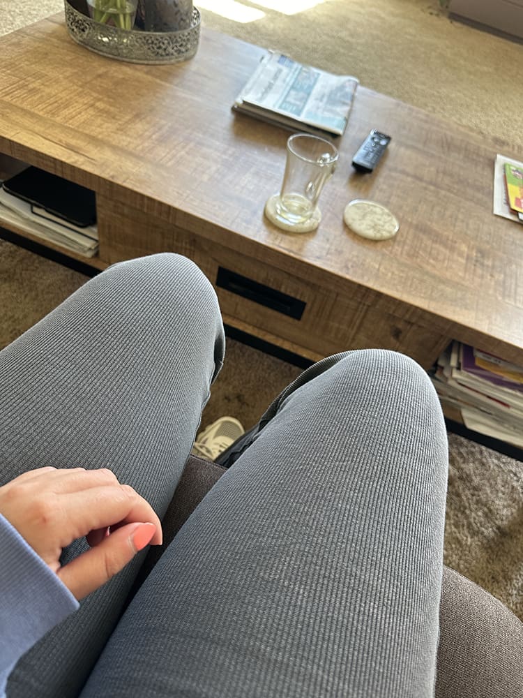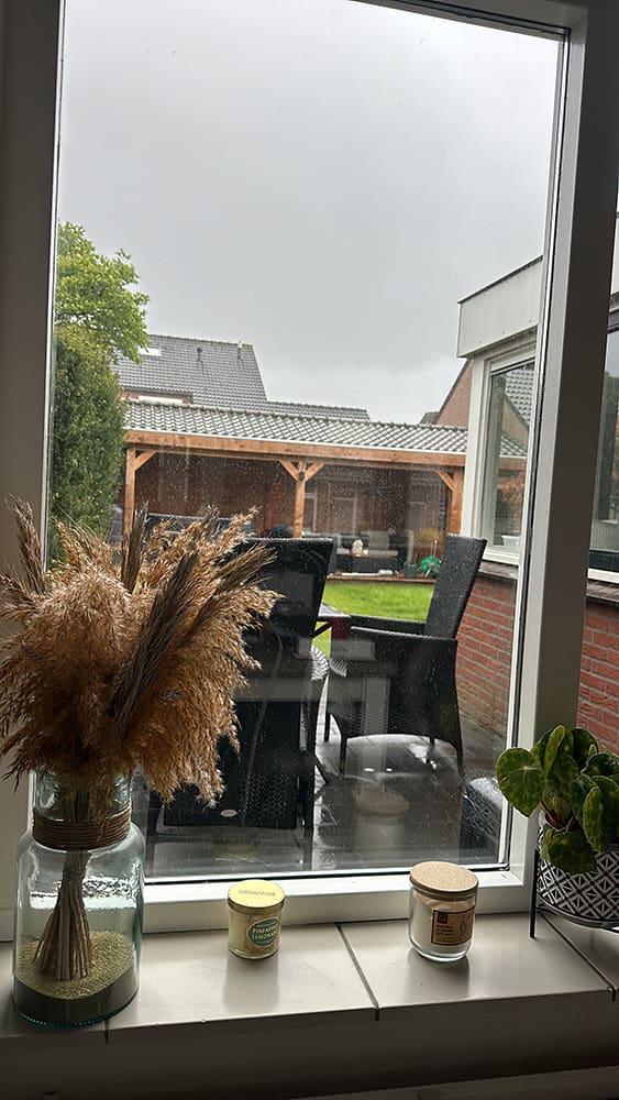 Onder een hete douche gestaan en daarna mij voorzichtig aangekleed. Ik ben op de bank gaan zitten. Beetje op mijn telefoon bezig geweest. De pijn nam wel iets af. Ondertussen hoest ik ook nog als een malle.