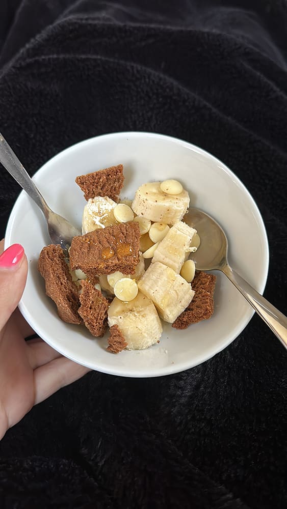Lekker een serie kijken en nog een lekkere stuk brownie eten.