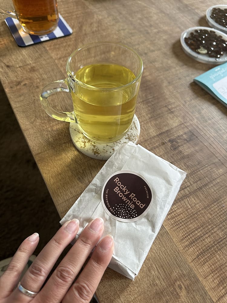 En tussendoor lekker thee drinken en daar kwamen de lekkere brownies tevoorschijn. Hier moest ik eerst wel een video mee maken.