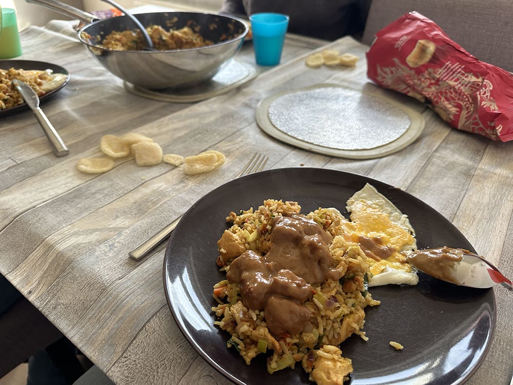 Daarna nog weer in de schuur bezig geweest en dan heb ik lekker bij mijn ouders gegeten. Moeders had nasi gemaakt, lekker!