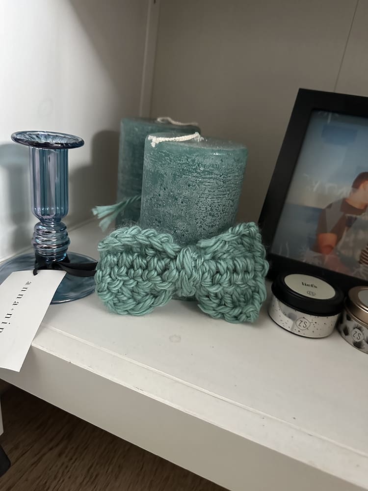 Daarna heb in thuis nog wat gerommeld. Kijk hoe lief deze zelfgemaakte strik van Joanne om de kaars past.