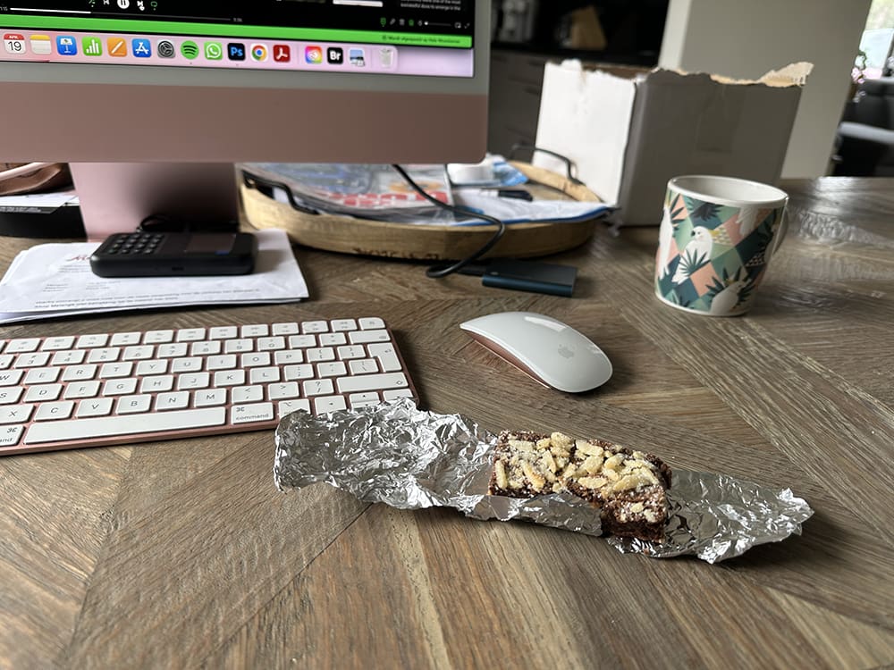In huis wat schoongemaakt en daarna achter de computer bezig. Ik had nog een lekkere brownie over.