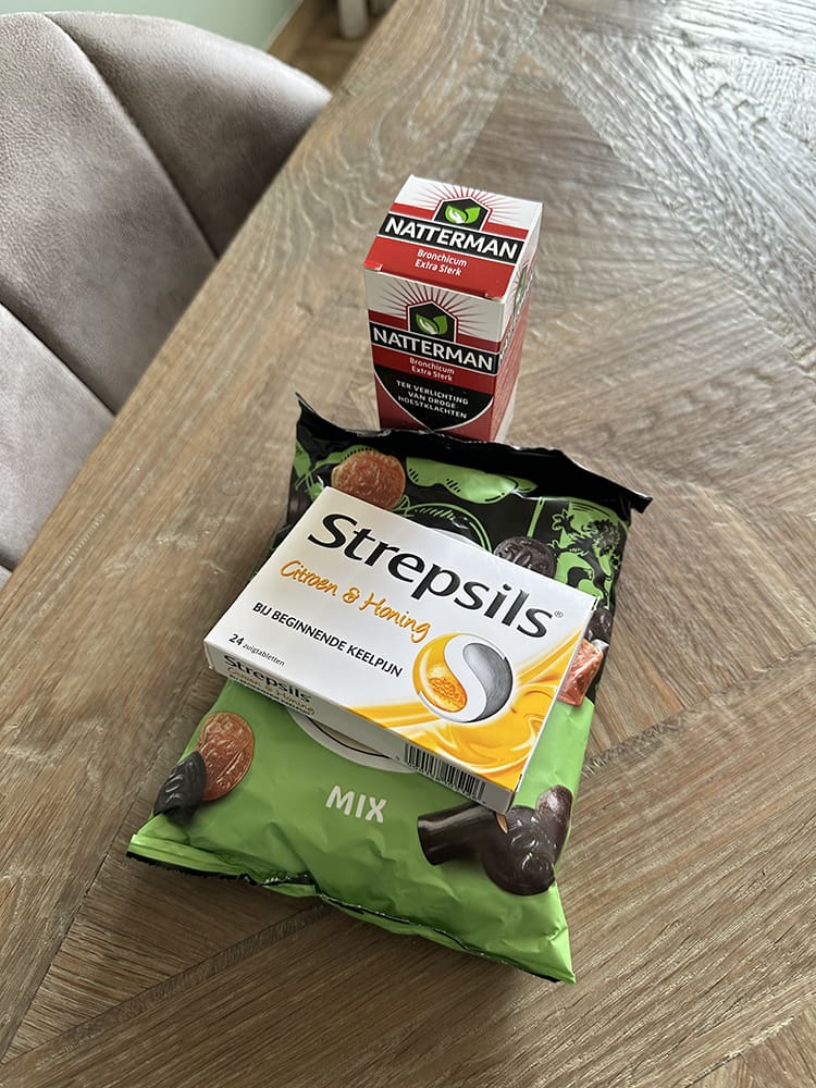 Ik heb wat tv gekeken, veel water gedronken en dropjes gehad. Ondertussen was mijn ibuprofen op en was de vaatwasser klaar. Die heb ik zitten uitgepakt, haha. Bukken deed zeer. Mijn moeder kwam mij daarna wat helpen en we reden samen naar de Kruidvat.