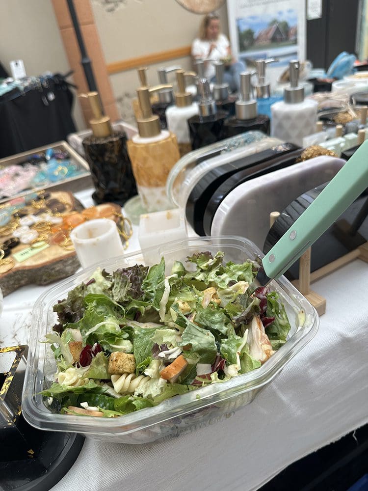 We staan vaker op de Landal Markt en dat is altijd rond etenstijd. De hele tijd patat bestellen is ook niet alles. Dit keer doen we gezond.