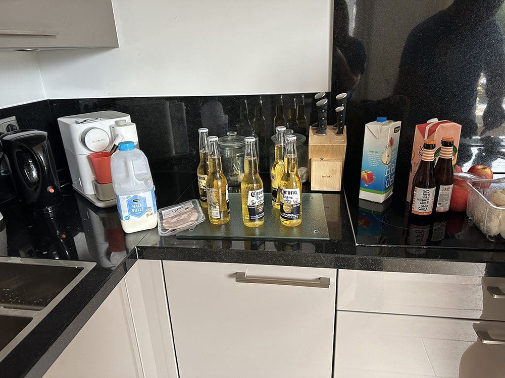 Zaterdag (5 augustus). Ik had gesport, gedoucht en wilde daarna koffie maken. Thijs trok de koelkast open….. Een grote melk bende. Ik had blijkbaar de dop er niet goed op terug gedraaid. Zo ben je de ochtend bezig met je koelkast schoonmaken. Was ook wel eens nodig, haha.