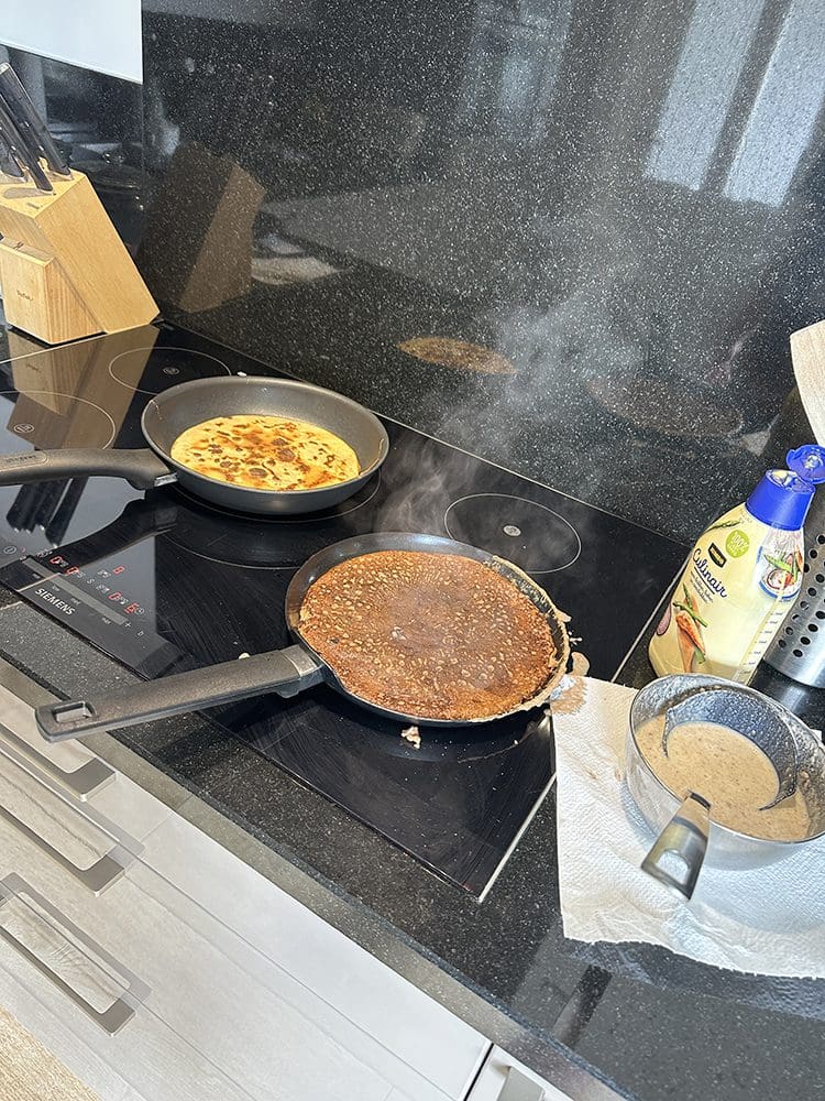 We hadden een tijd geleden afgesproken om te gaan BBQ’en. Maar met dat slechte weer werd dat niks. Gourmetten kan altijd wel, haha.