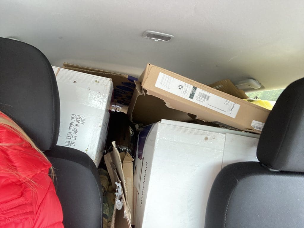 Thuis heb ik weer eerst geblogd en daarna kwam moeders met hun grote auto. We propten deze zo vol mogelijk met karton en plastic wat we verzameld hadden. Dit hebben we naar een afvalpunt gebracht. In één keer redden we het niet dus nog een keer op en neer.