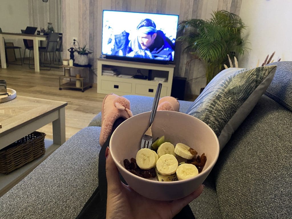 Daarna lag ik uitgeteld op de bank. Van Thijs kreeg ik een bakje fruit. Na Expeditie ging ik gelijk naar bed.
