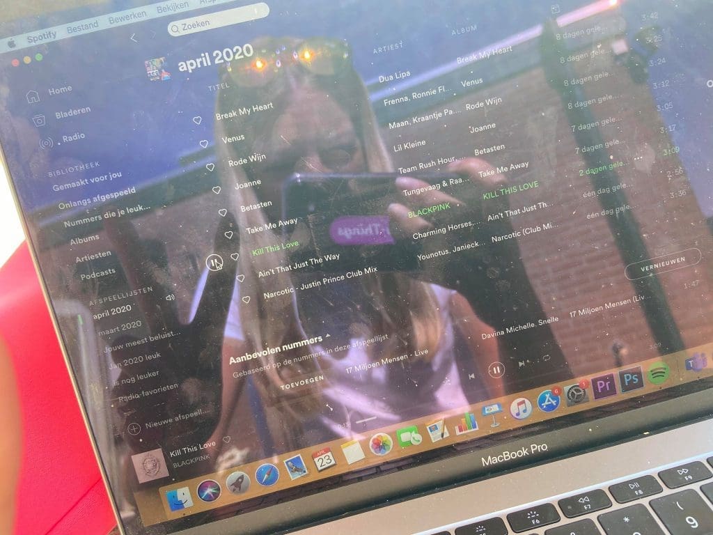 Donderdag (23 april). Een beetje achter de laptop wat doen voor de blog met Spotify aan. Daarna een vergadering met de school in Doetinchem. En daarna weer verder met de blog.