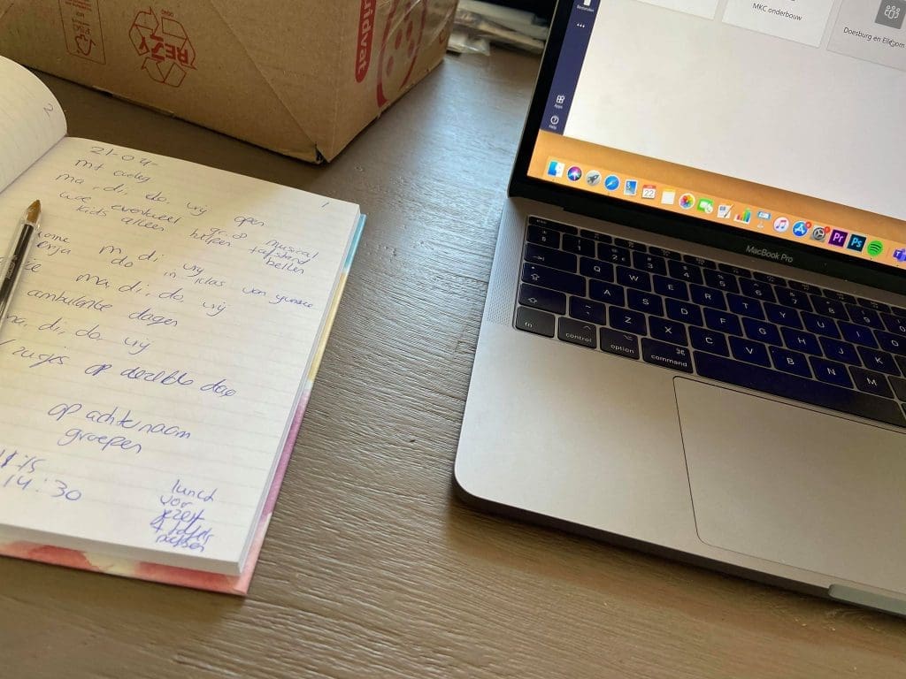 Vrijdag (24 april). Ik begon de ochtend met sporten. Daarna was ik druk voor school. Wat berichten eruit doen en appen met collega’s.