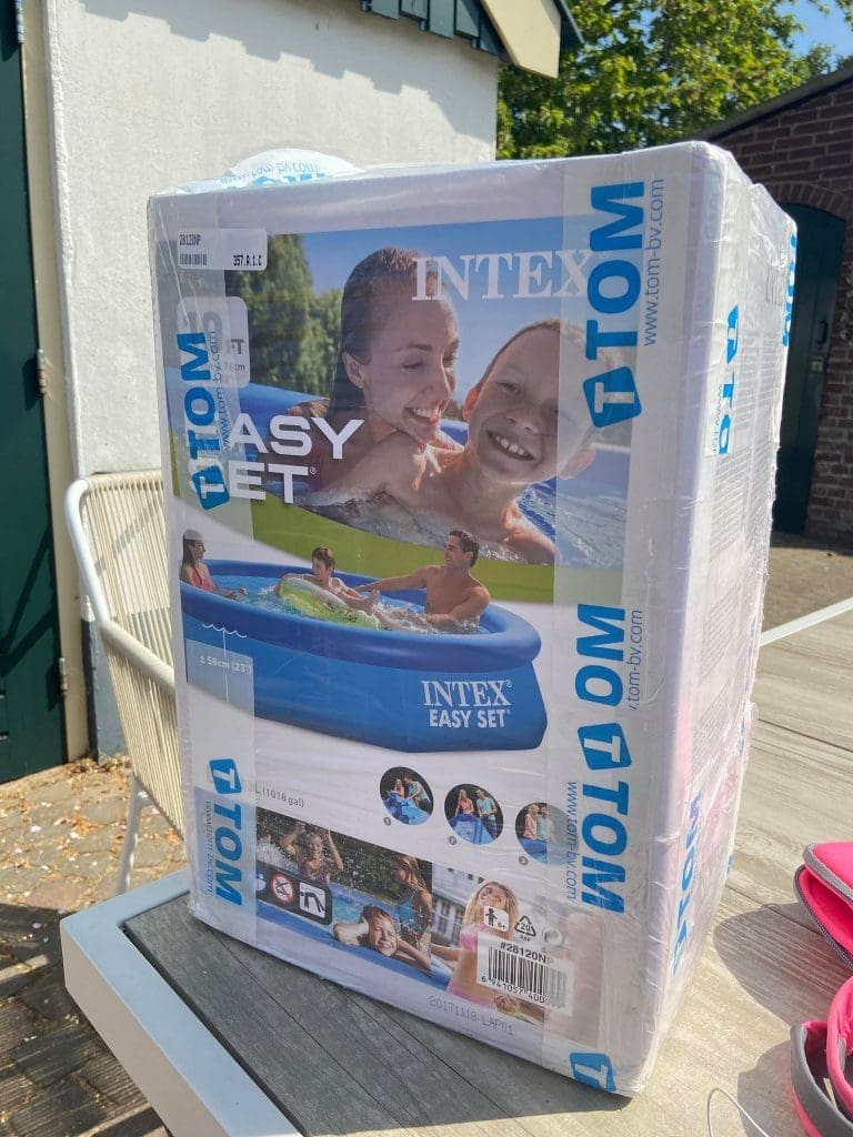Ondertussen kwam dit pakket binnen. We hebben maar vast een zwembad gekocht. Mocht de zomervakantie niks worden, maken wij ons eigen Curacao bij huis.