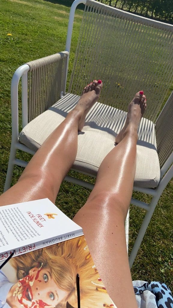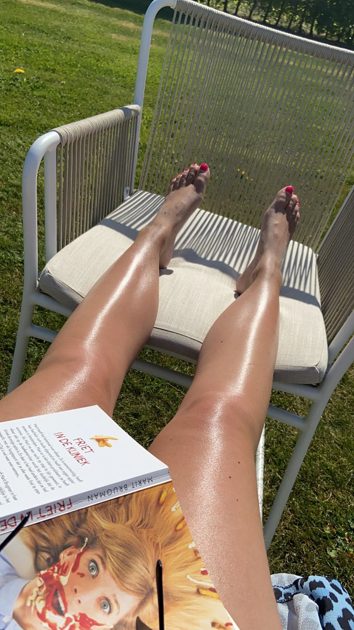 Na wat geappt te hebben met collega’s over afspraken voor na de vakantie heb ik nog wat gelezen. Lekker in het zonnetje.