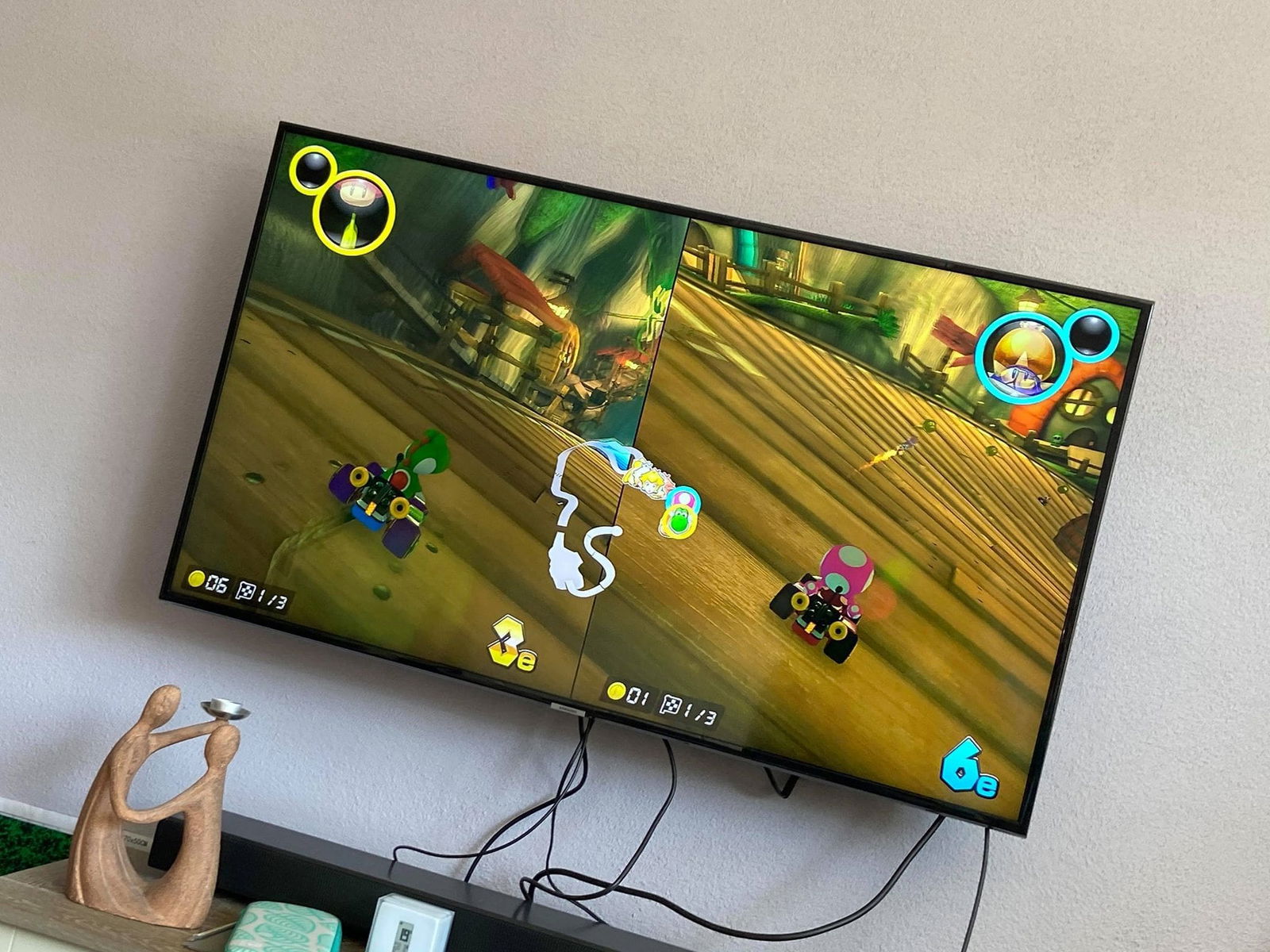 Mijn schoonzusje heeft een Nintendo Switch en we speelden daar Mario Kart op. Lachen!