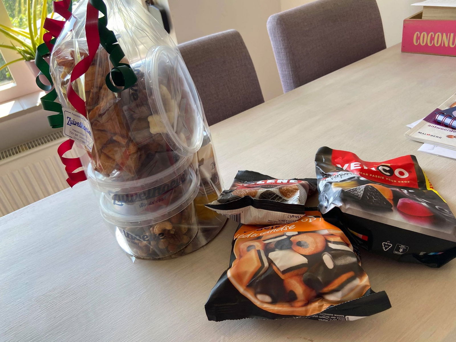Zaterdag (25 april). Ik heb wat gesport en daarna kwam er ineens een pakket binnen. Dit is voor een Instagram post en wordt zo leuk! Thijs was ondertussen ook gekomen en we dronken even koffie met ma erbij.
