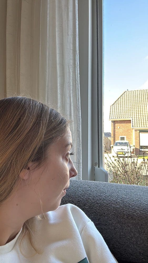 Maandag (17 maart). Ik deed rustig aan die ochtend. Beetje op mijn telefoon bezig en naar buiten staren. Onze koffers zouden komen.