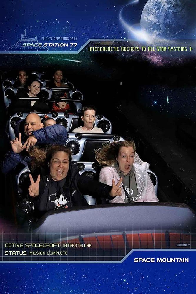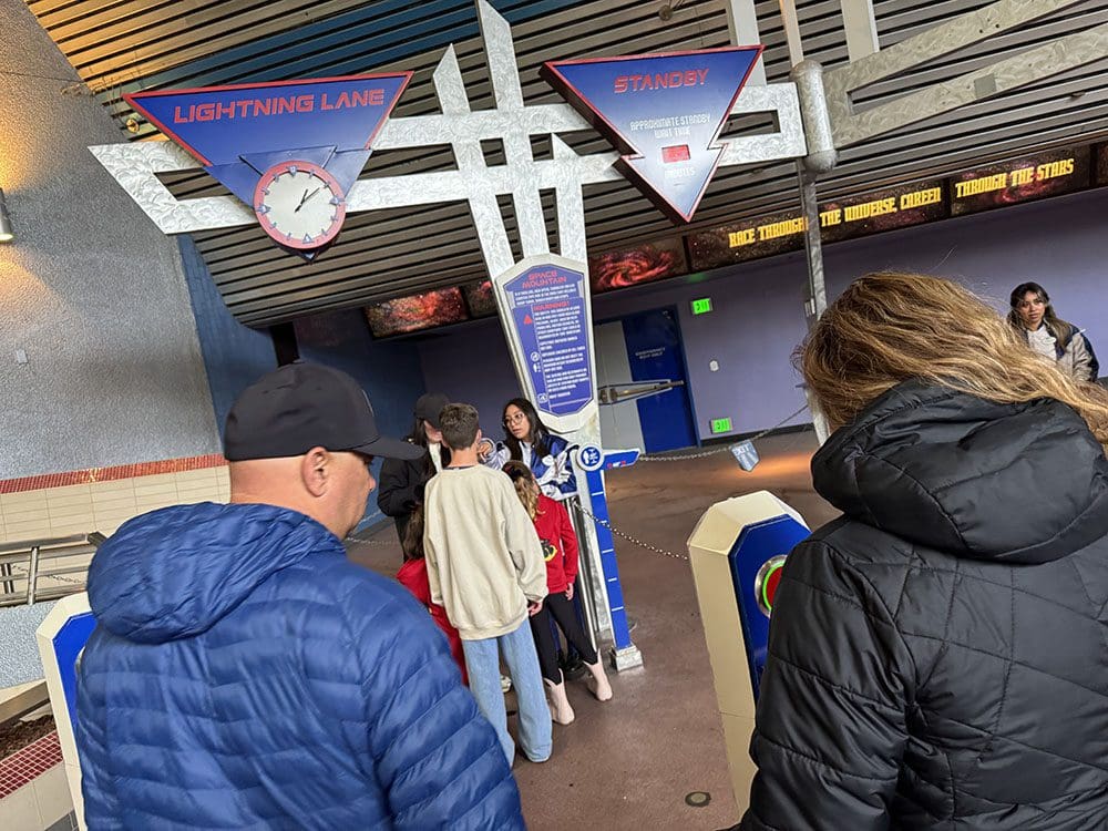 Door naar Space Mountain. Een super snelle achtbaan en ook hier konden we de rij voorbij.